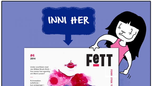 For litt siden sendte jeg FETT – Feministisk Tidsskrift en mail med tittelen «Har tegneserier. Vil bidra». Svaret kom raskt. Ikke bare syntes de det var en strålende fin idé, men de ville ha meg som fast bidragsyter. Det er jo mer enn stas! Helt maks megakult faktisk. Jeg har abonnert på FETT…